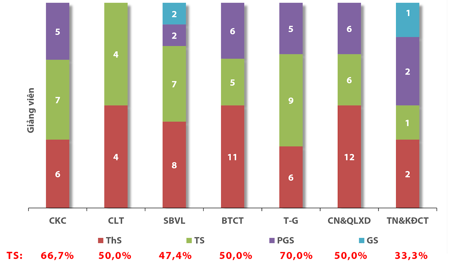 - Số lượng gồm 123 giảng viên trong đó 108 giảng viên toàn thời gian, 15 giảng viên kiêm nhiệm tại khối Phòng, Ban; 03 Trợ lý Khoa.